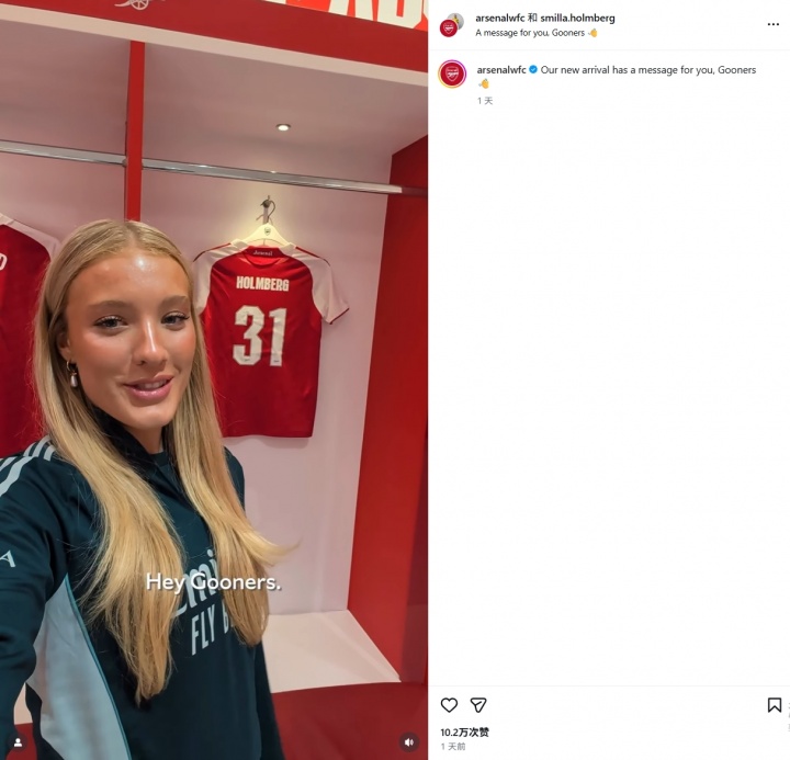 阿森纳女足此前官宣签下19岁的瑞典后卫斯米拉·霍尔姆贝里,由于她形象出众,在球迷圈引来了不小的反响。